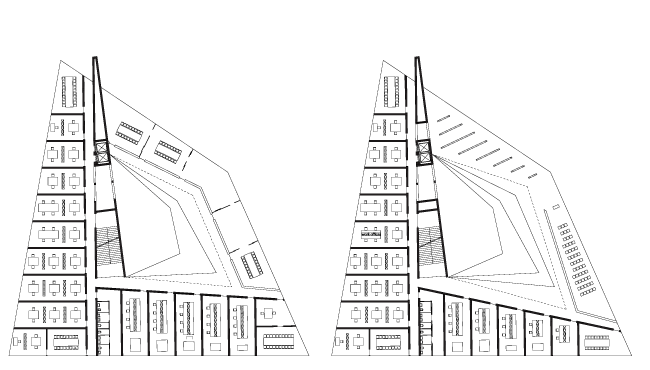 Zusätzlich soll eine Wand, die die Struktur von Barcelona abbildet, zum Landmark werden und den Besucher in das Gebäude leiten. Die Wand verknüpft und erschließt die beiden Gebäudeteile miteinander.