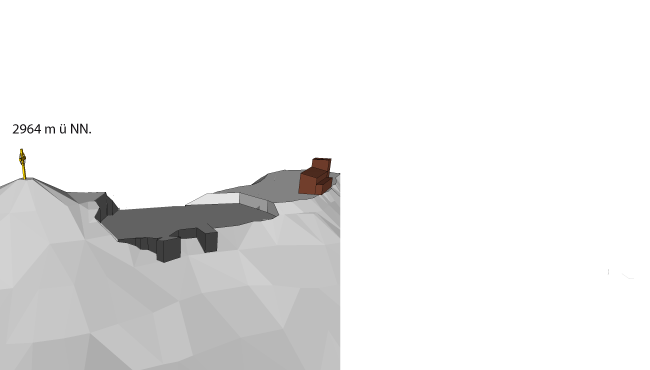 Aufgabe des Entwurfes war es am Gipfel der Zugspitze eine Presse- und Kommunika-tionszentrum für die Olympischen Winterspiele 2018 zu planen, mit Büro-, Gastronomie- und Studioflächen sowie öffentlichen Bereichen und Seilbahnen. Die bisherige zusammengewürfelte Bebauung wird rückgebaut und auf deren Fundamente ein kantiges, kristallines Gebäude aufgesetzt, das alle geforderten Bereiche unter einer bronzefarbenen Hülle vereint. Die Berghütte "Münchener Haus" von 1893 bleibt als Denkmal erhalten, die neue Kubatur faltet sich herum und spannt einen Zwischenraum, von hier gelangen Besucher zur österreichischen Bergstation. Die Besucherbereiche geben Ausblick auf die Skiarena bzw. talwärts gen Garmisch. Nachhaltig kann die Bergstation umgenutzt werden. Bürobereiche werden Klima- und Forschungsstation, in den Studioturm zieht ein Hotel ein das Deutschland höchsten Punkt auf 3000m ü.NN. markiert.